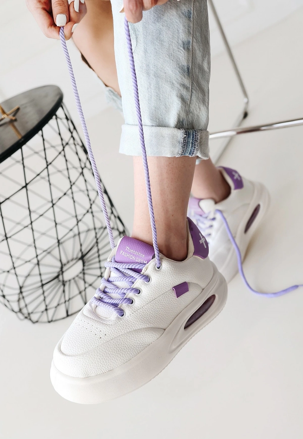 Chris Beyaz Cilt Lila Detaylı Bağcıklı Spor Ayakkabı