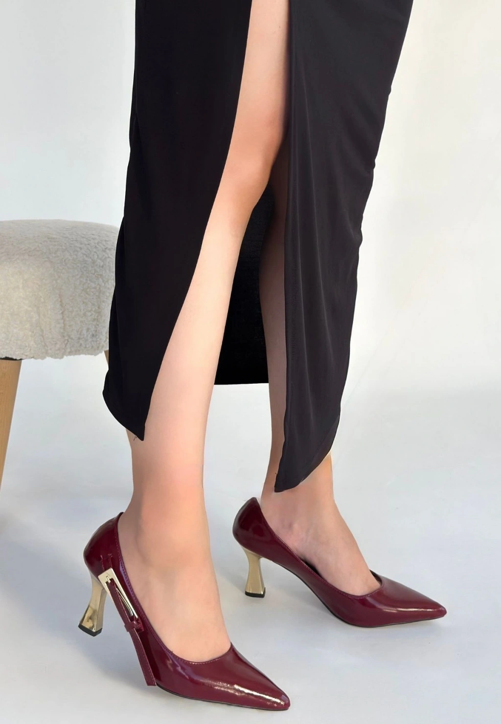 İnja Bordo Rugan Topuklu Ayakkabı