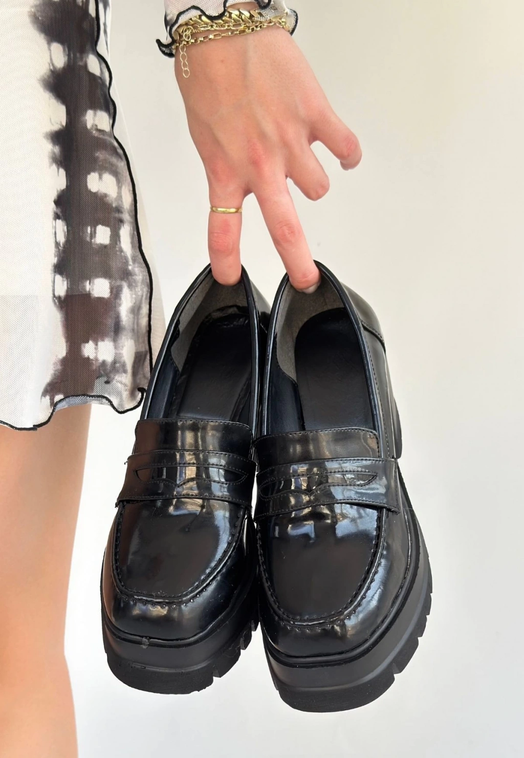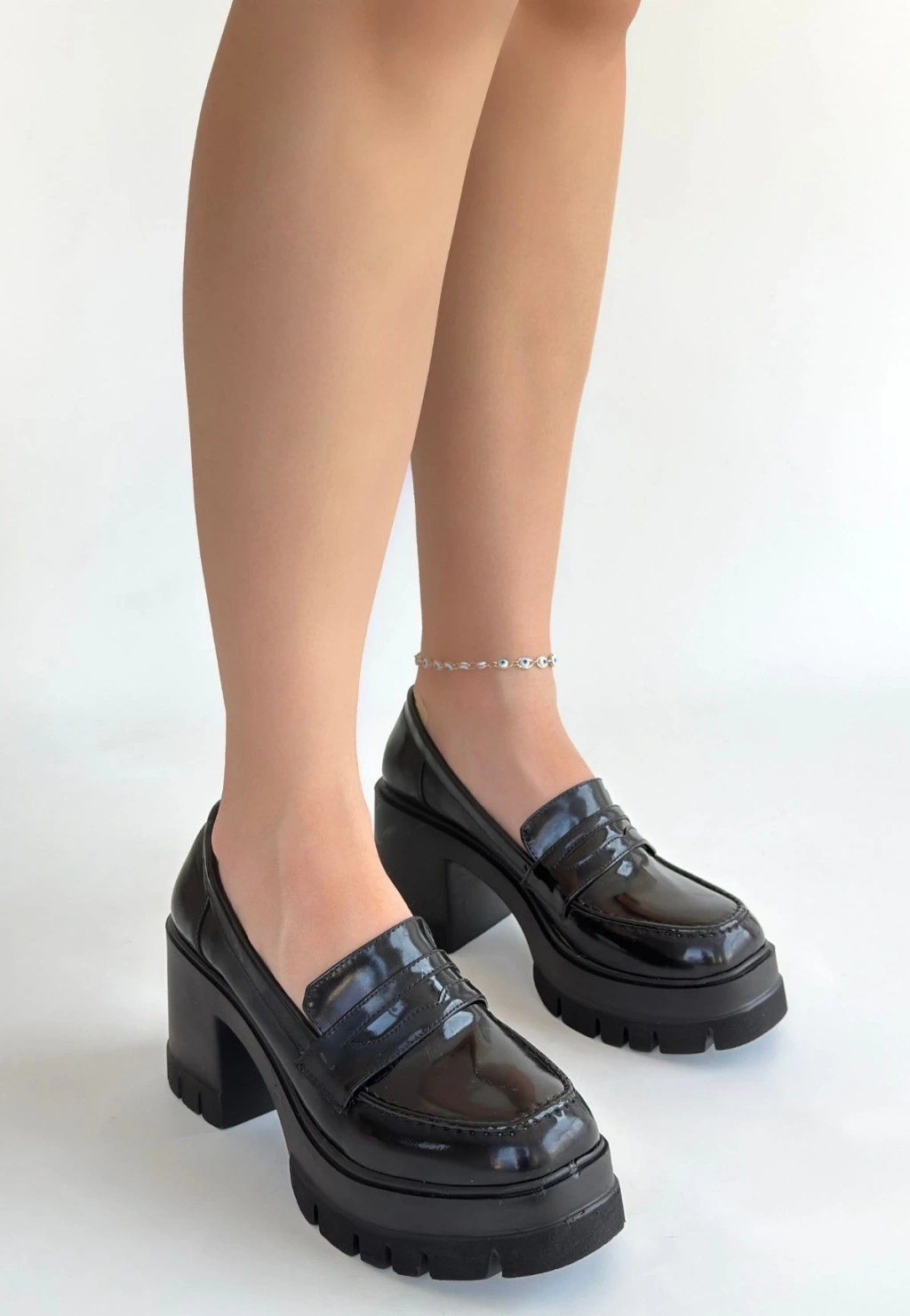 Janes Siyah Rugan Dolgu Topuk Ayakkabı