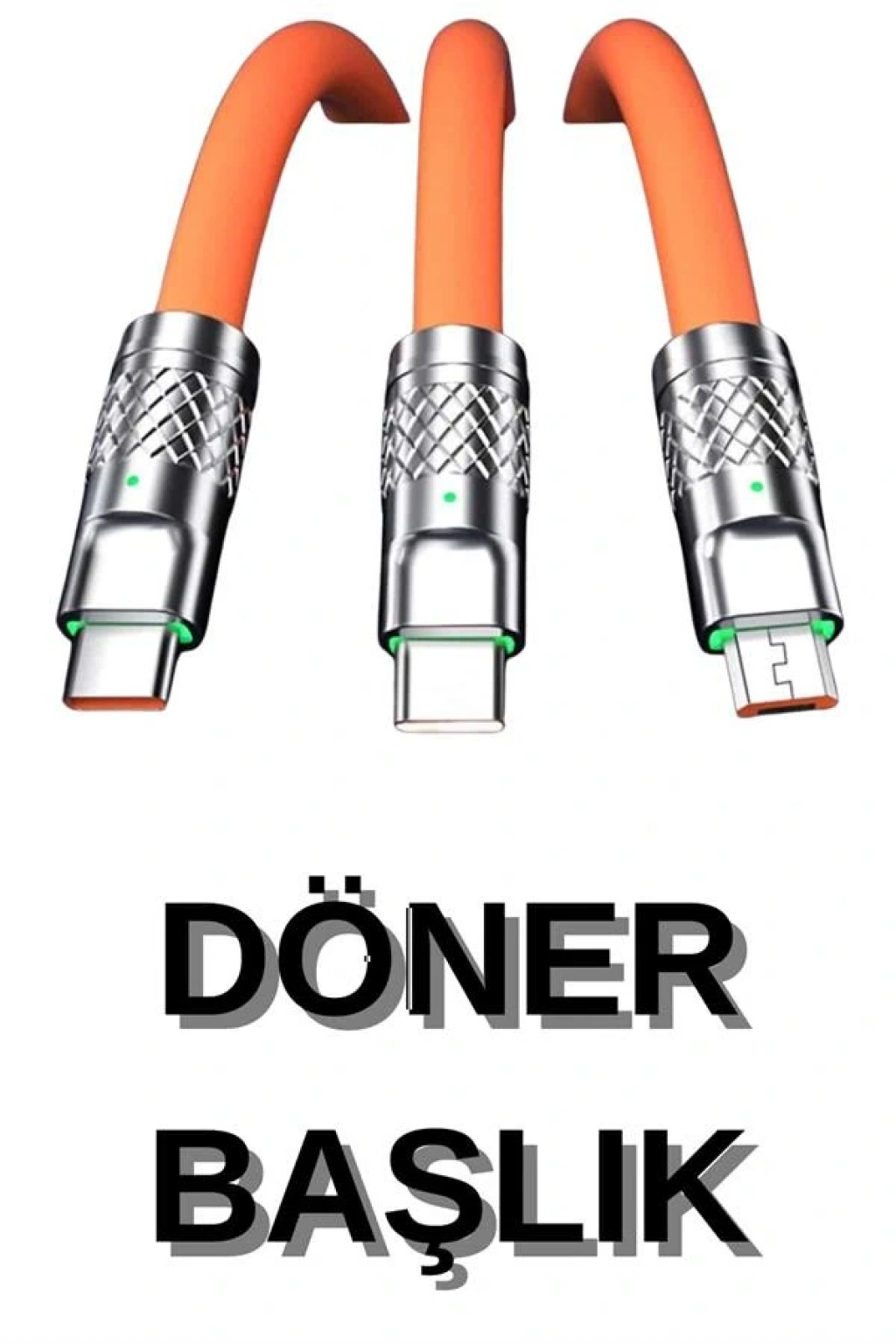 LitaeTrend 3 İn 1 Süper Hızlı Şarj Kablosu Android ve İOS Uyumlu Silikon Şarj Kablosu