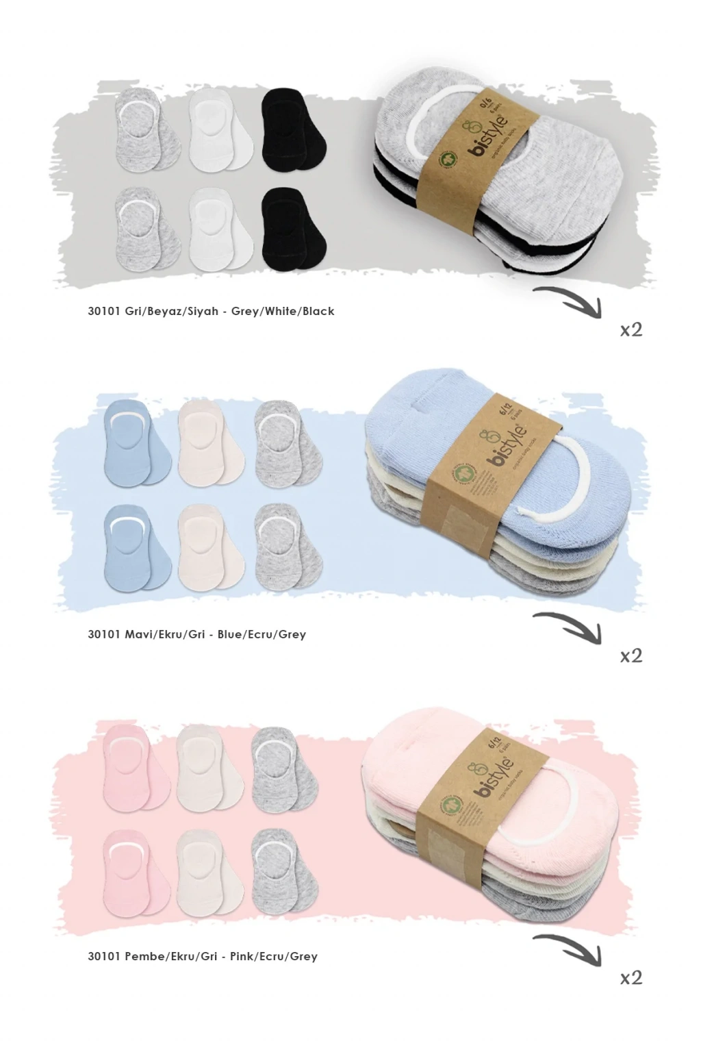 LitaeTrend 6'lı Silikonlu Babet Penye Çorap Bs30101b Mavi Ekru Gri