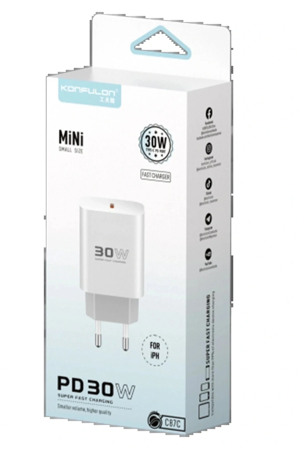 LitaeTrend C87C 30W Type-C Çıkışlı Ekstra DL50 1M Type-C to Lightning Kablolu PD Şarj Cihazı - Beyaz