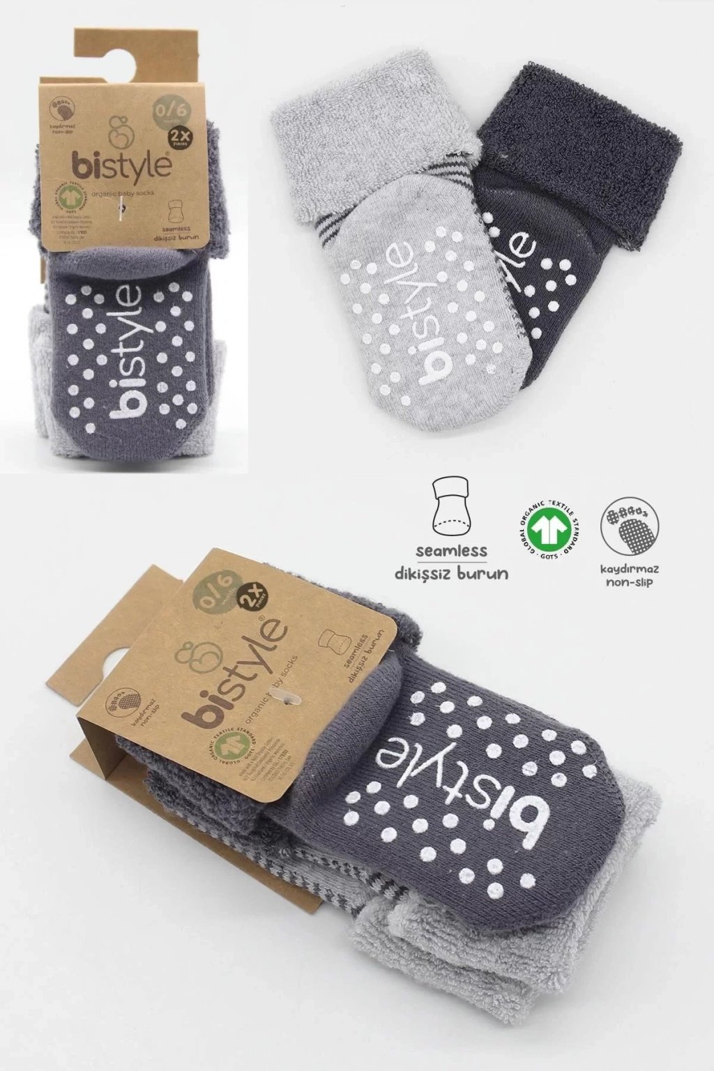 LitaeTrend Çemberli Kaymaz Havlu Soket Çorap 2'li Gri-antrasit