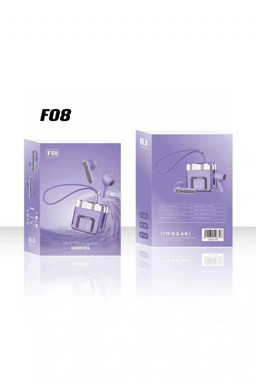 LitaeTrend F08 Dijital Şarj Göstergeli TWS Bluetooth Kulaklık - Mor
