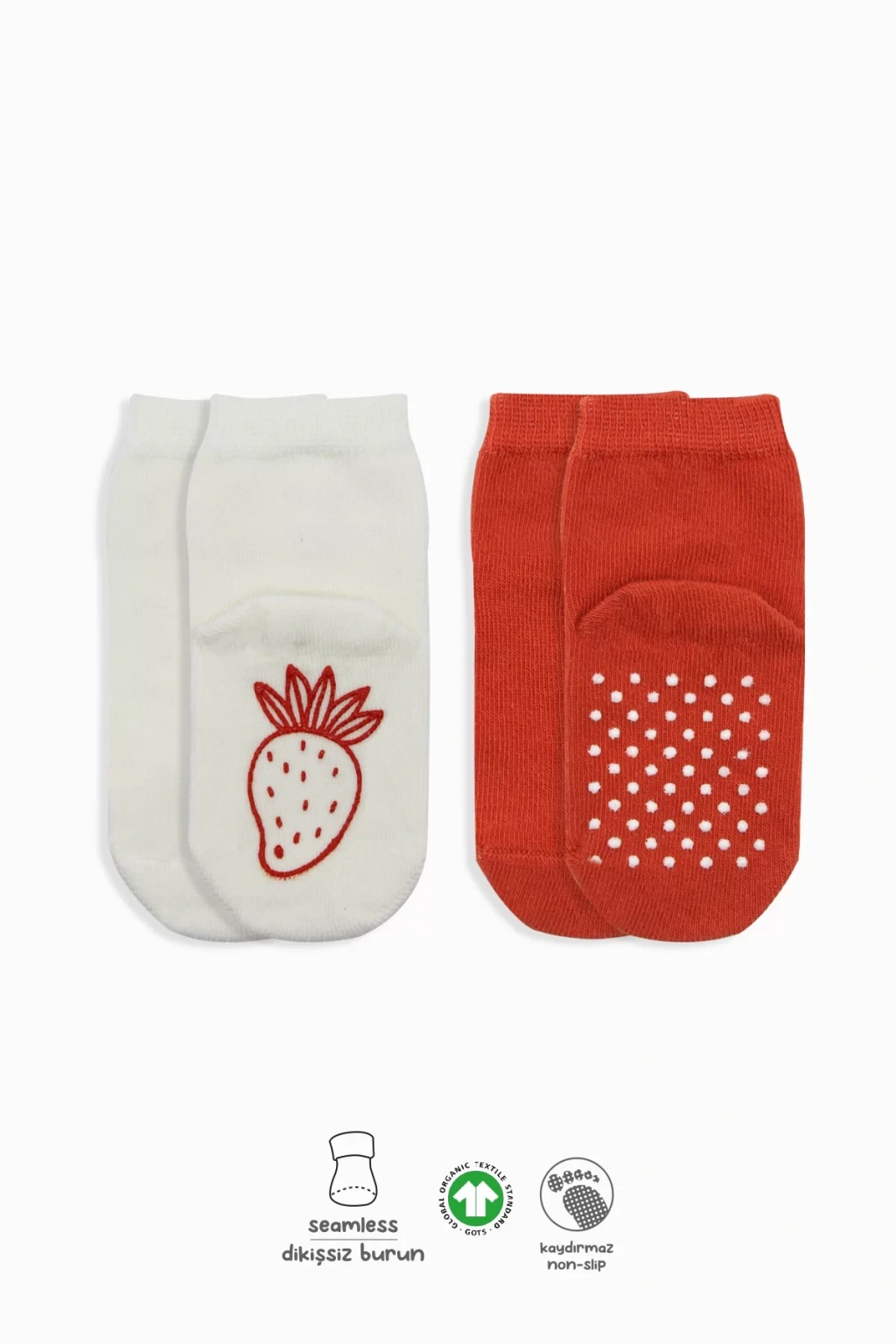 LitaeTrend Meyve Figürlü Kaymaz Soket Çorap 2'li Kırmızı Ekru