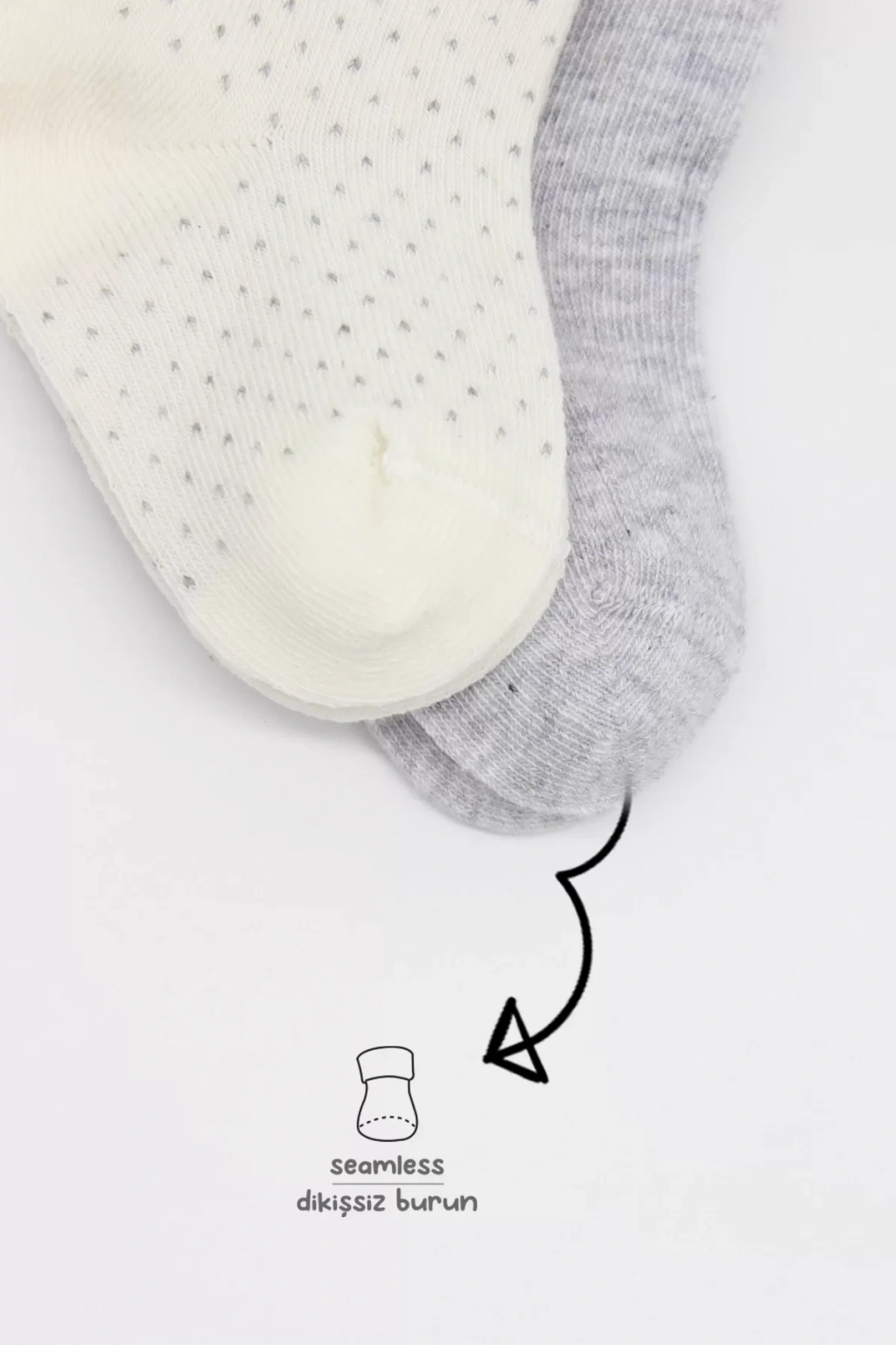 LitaeTrend Organik 2li Puan Derby Penye Soket Çorap Gri Ekru