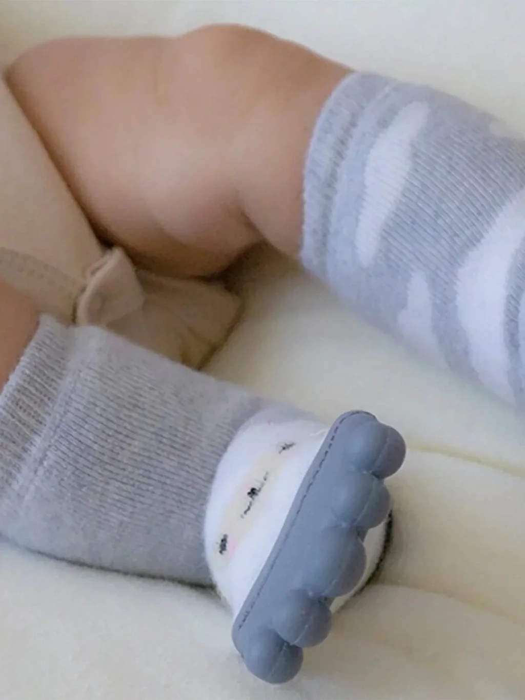 LitaeTrend Silikon Diş Kaşıyıcılı Havlu Bebek Çorap Gri