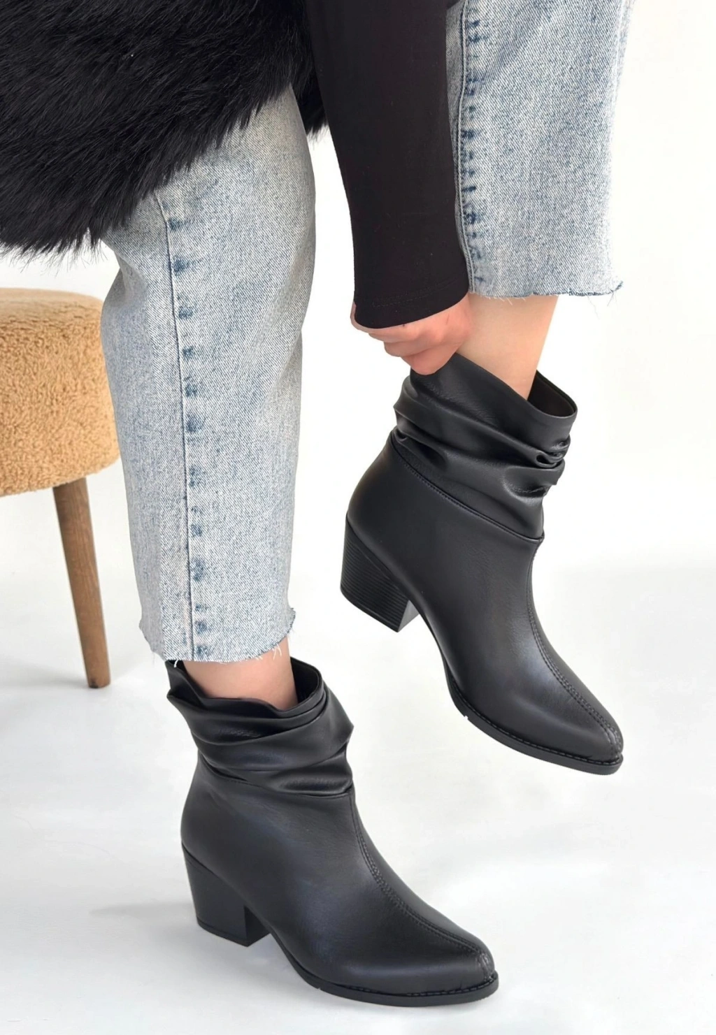 Lukana Siyah Cilt Topuklu Körüklü Bot