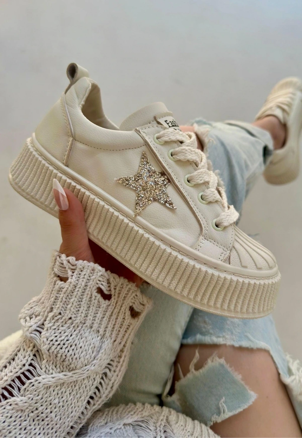 Piata Bej Cilt Bej Tabanlı Bağcıklı Spor Ayakkabı
