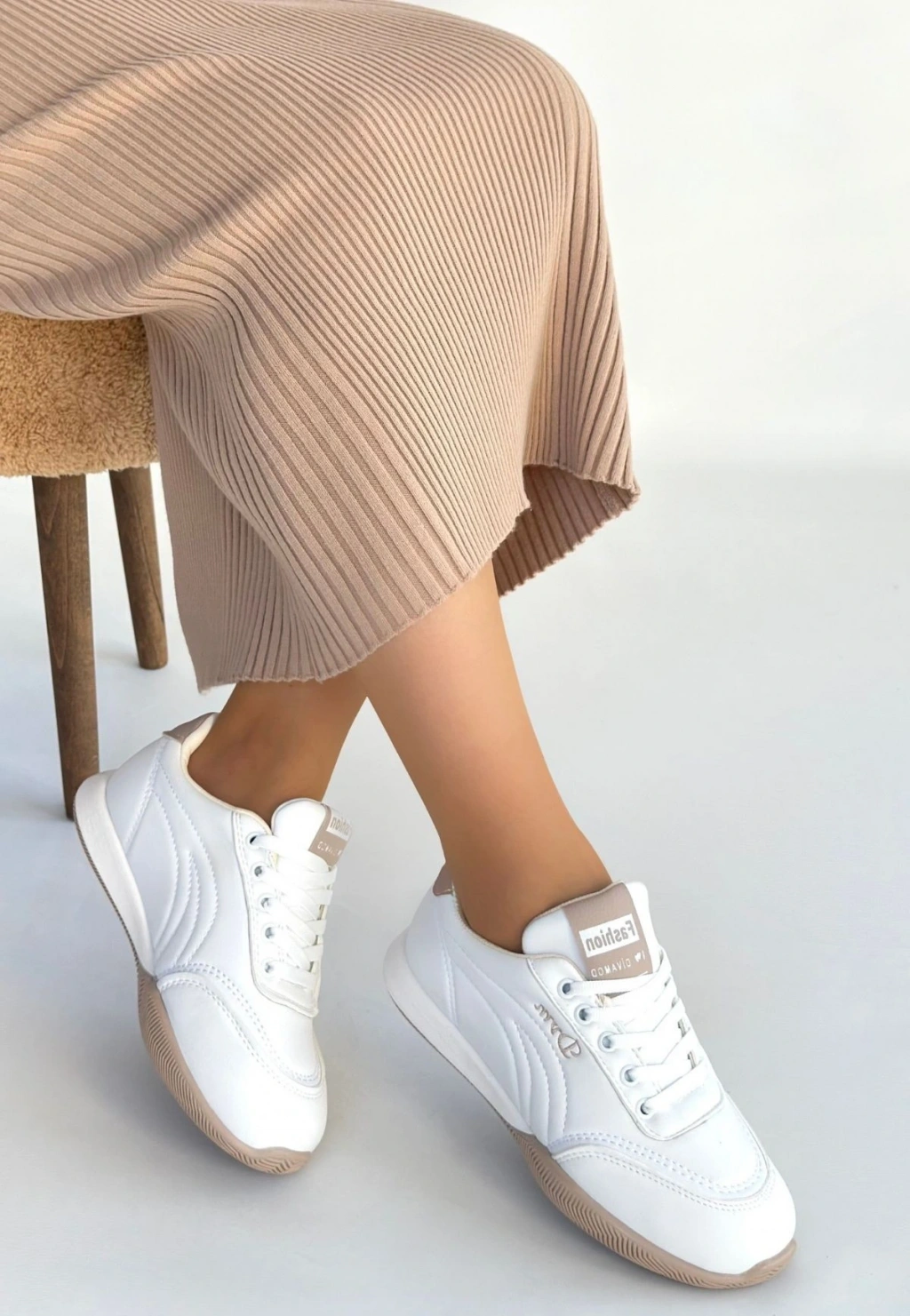 Tawen Beyaz Cilt Bağcıklı Spor Ayakkabı